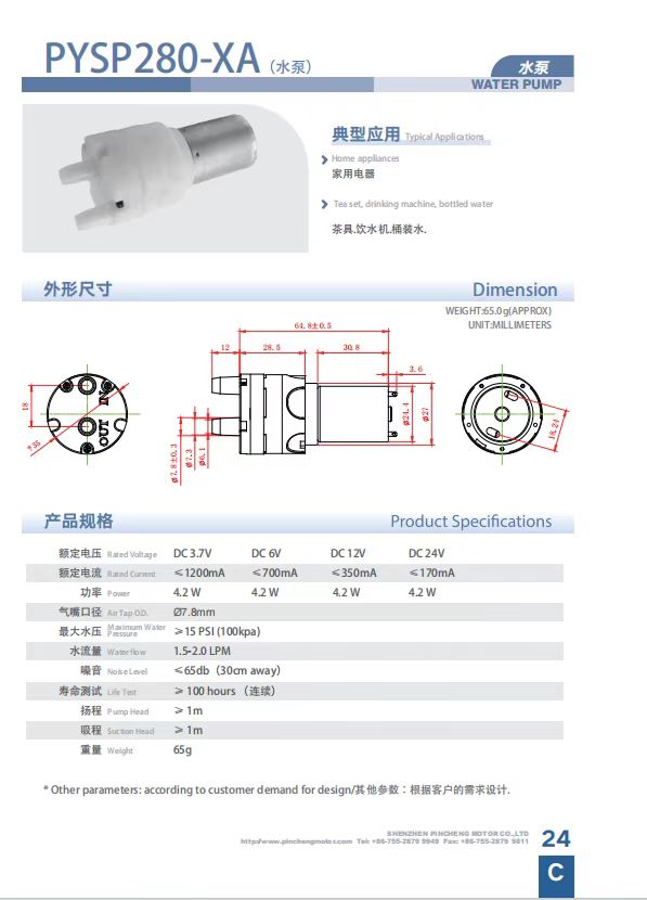 Versatile Application & Compact Integration Designed for seamless integration into tight spaces, this small electric pump offers the versatility that OEM/ODM projects demand. Its energy-efficient motor is optimized for low-voltage systems, providing a durable and cost-effective solution for foam hand sanitizer dispensers and water circulation systems. Choose Pincheng for a pump that combines whisper-quiet efficiency with certified food safety.